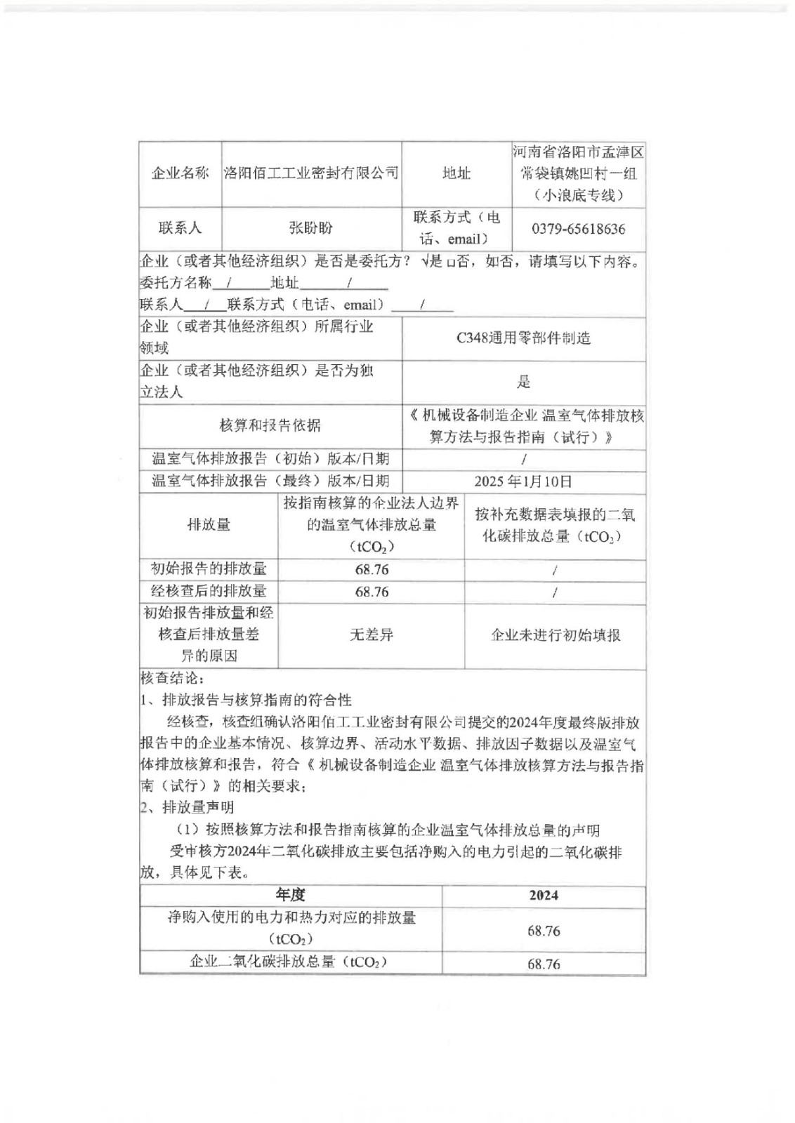 2024年溫室氣體排放核查報告